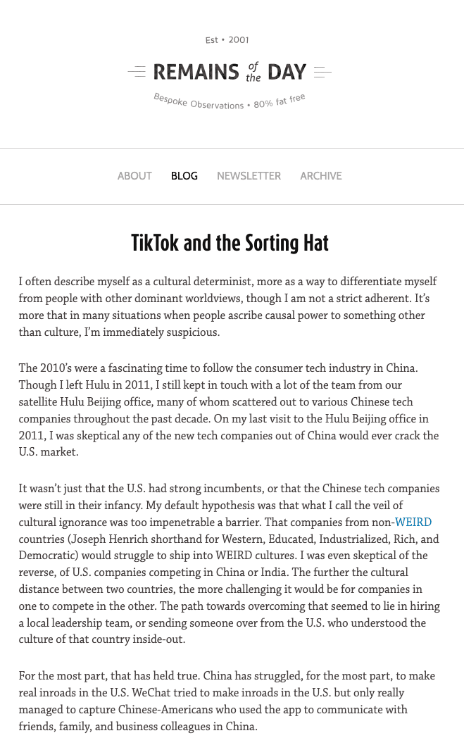 Eugene Wei's essay on the Tiktok algorithm in 2021