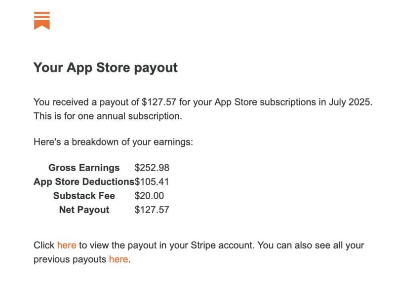 As you are aware, there has been a lot of hue-and-cry about Substack’s paid subscriptions routing through the Apple in-app payments for the iOS app. But the noise just got louder with creator-side payout receipts now floating in the wild.