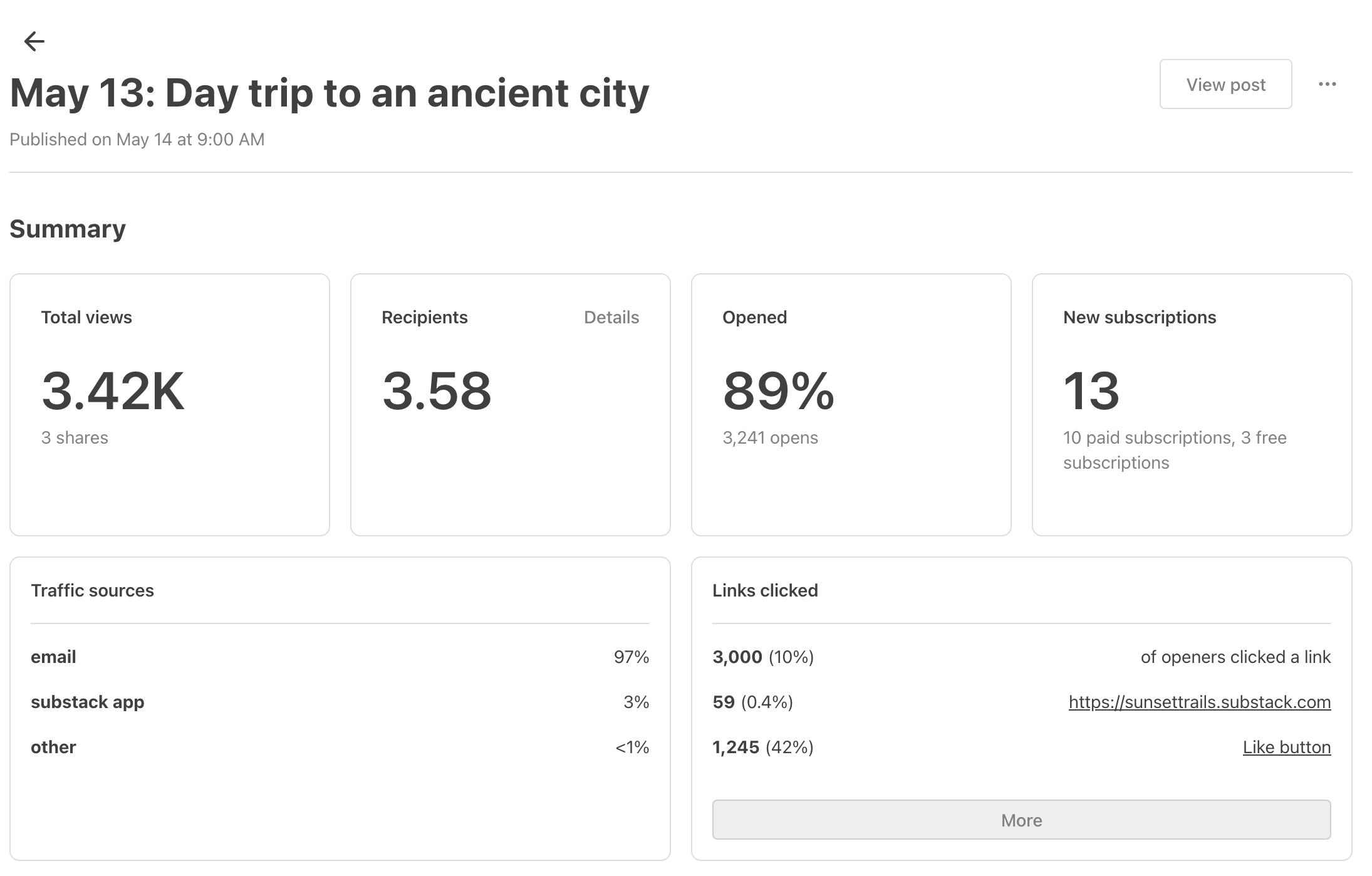 What this means for you as newsletter creators, is to watch closely how your demographic spread of subscribers currently are. A quick look at the traffic sources section on the Post Summary should give you this information.