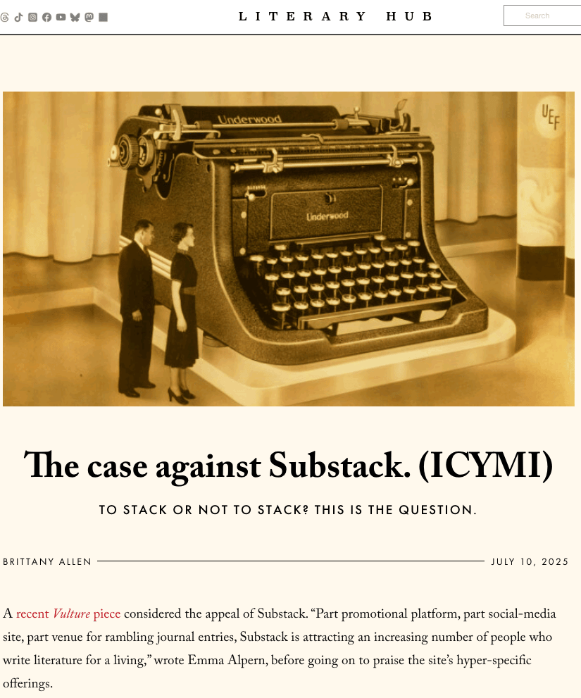 Brittany Allen's thought piece on Substack for Literary Hub